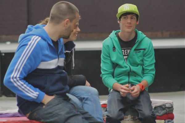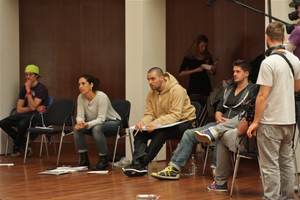 Während der Workshop-Phase waren wir bei einem Konzert der „Liga der außergewöhnlichen MCs“ in Basel. Mit von der Partie waren Kool Savas, die Orsons, Olli Banjo (der später auch bei der RfJ-Premiere dabei war), Moe Mitchell und Laas Unltd. (der auf den Dispos der Produktionsfirma immer Laas United hieß).